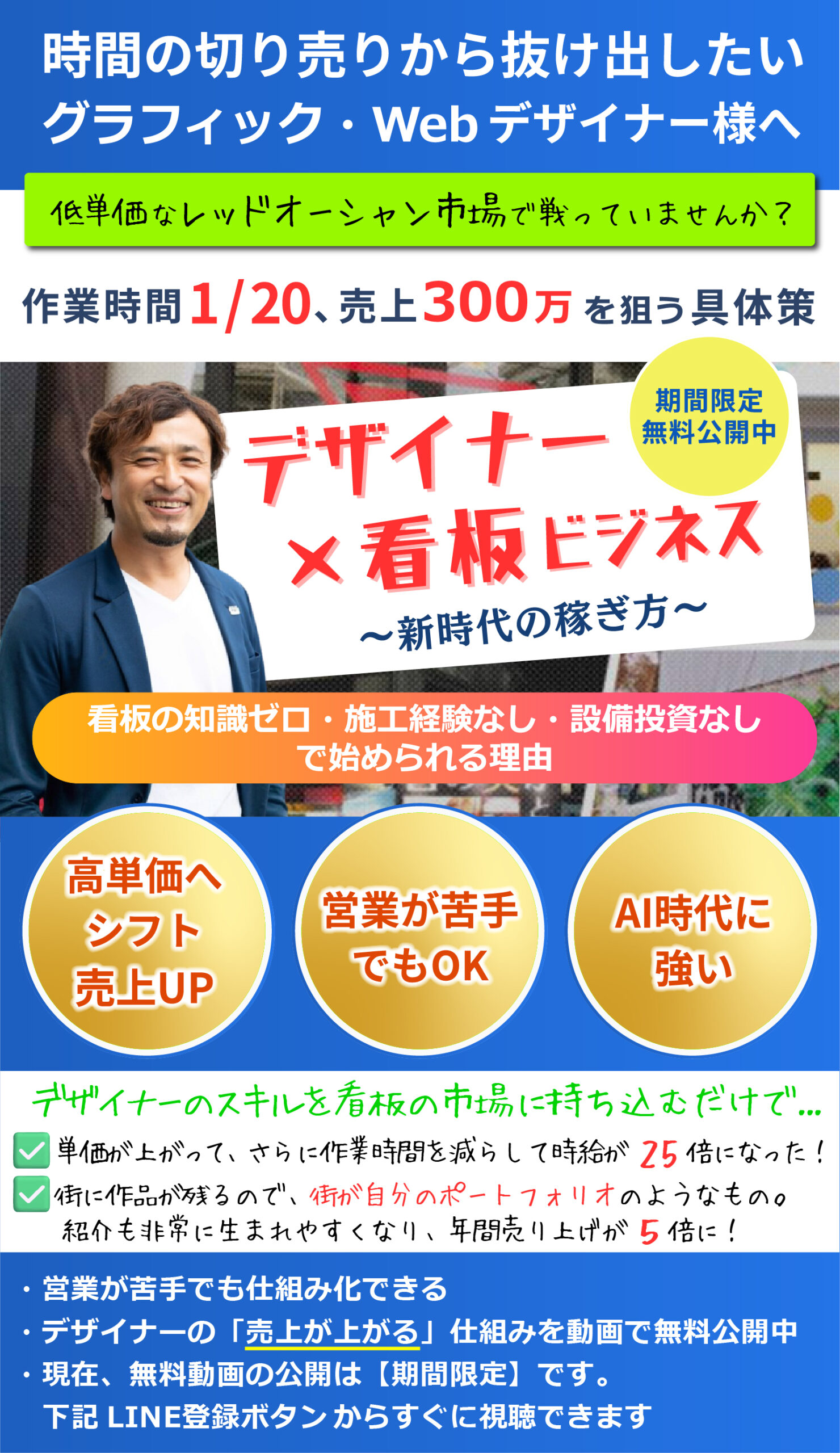 【無料動画】時間を切り売りする働き方から卒業!デザイナー×看板ビジネス 新時代の稼ぎ方